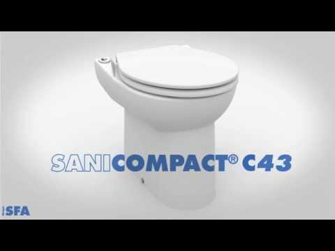 Det kompakta konceptet är idealiskt för att skapa en toalett med handfat i de trångaste utrymmena, särskilt SANICOMPACT C43-modellen eftersom den bara är 43 cm djup. Kompakt användning är enkel: de har en dubbel spolningsknapp (1,8 liter / 3 liter) som startar en sköljning - krossning - evakuering - sköljning. När du trycker på en av avloppsknapparna öppnas en magnetventil och tar vattnet direkt från hemnätverket, precis som en tvättmaskin. Systemet undviker installation av en extern cistern.